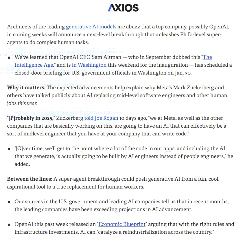 Axios dropped a report detailing how companies like OpenAI and Meta are racing to develop these “superagents.”